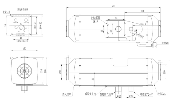 适用范围:适用于特种车设备舱、保温舱升温取暖,各类工程车辆操作室取暖